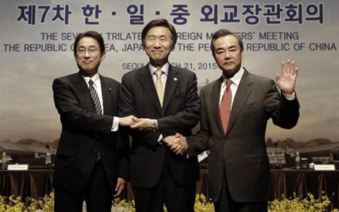 (VOVworld)- 韩国总统朴槿惠、日本首相安倍晋三和中国国务院总理李克强11月1日在3年多以来的首次三国领导人会议上一致同意“完全恢复”三方合作机制。