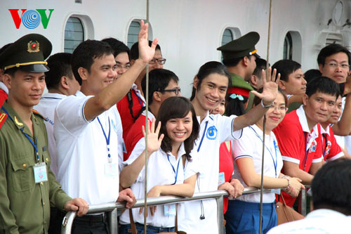 (VOVworld)- 由198名青年组成的2014年“为了家乡海洋海岛之旅”青年船活动代表团5月28日乘坐HQ-571号船从胡志明市吉莱港启程赴长沙群岛。该活动由胡志明共青团中央和越南海军部队司令部联合举办,主题为“青年为了越南海洋海岛主权”。