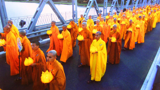 9日,越南中部承天顺化省佛教教会治事委员会举行迎佛仪式,以祈求国泰民安,世界和平,道法长存和民生安乐。迎佛团从顺化市白藤街的妙帝国寺出发巡经各条大街前往承天顺化省佛教教会治事委员会总部慈昙寺。