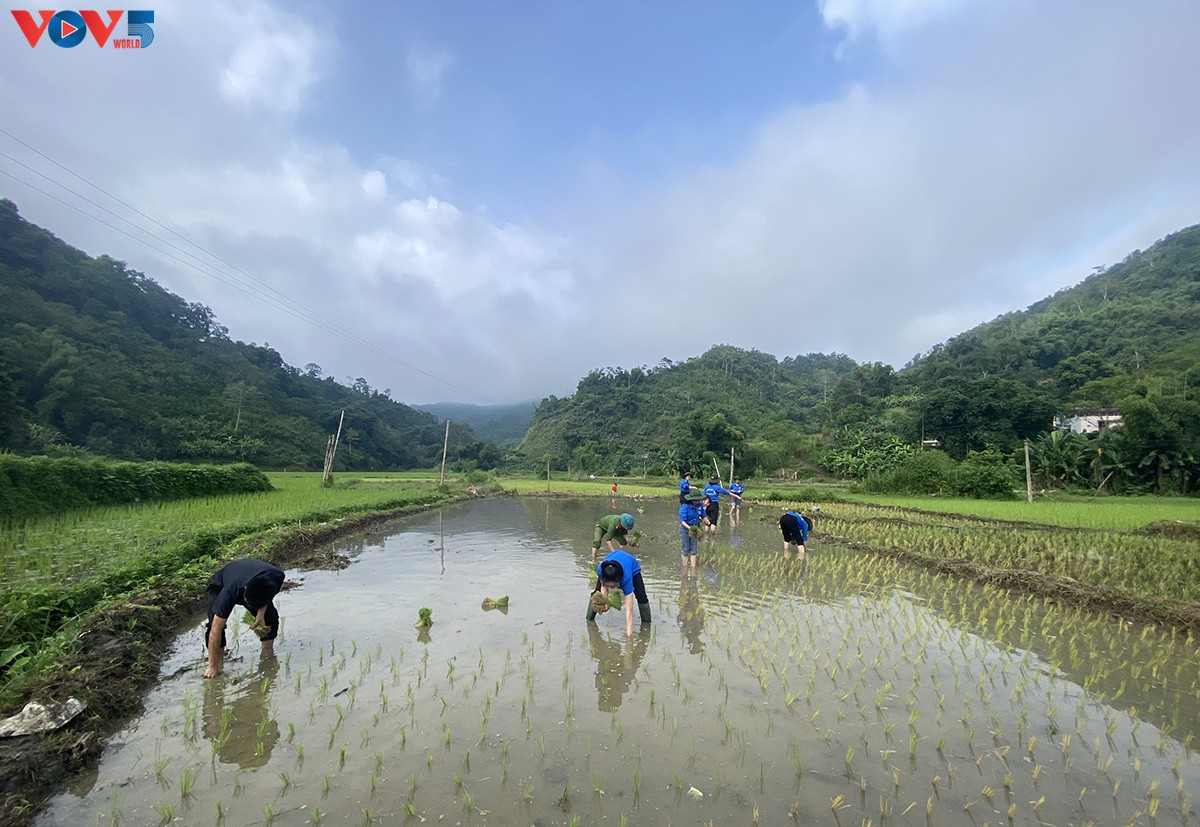 北件省青年团员帮助当地政策优抚家庭插秧。 |