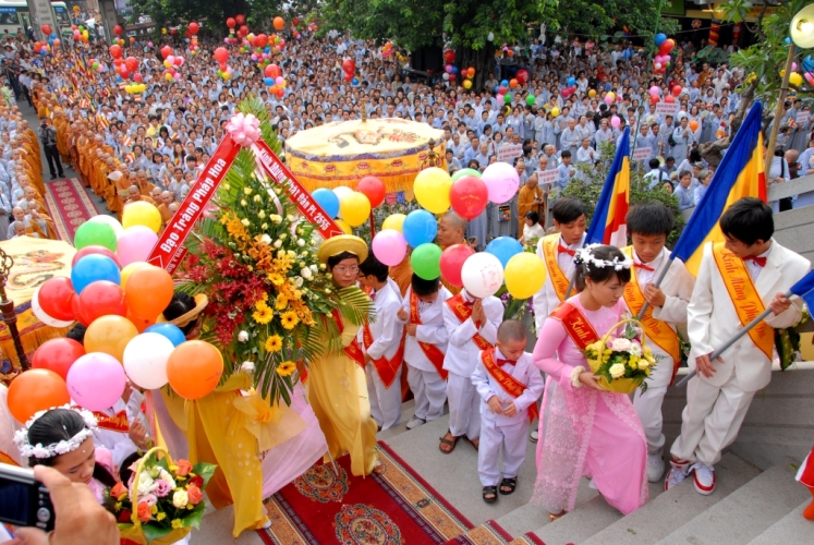 全国僧众和佛教信徒举行多项切实活动,庆祝佛诞节。坚江省迪石市市民杜氏雪积极动员身边的人募捐旧衣服、大米、方便面等,帮助穷人。她说: “身为佛子,我要尽力行善,动员大家力所能及地参加各项慈善活动。做善事,让我身心健康,可惜的是,我年事已高。如果年轻十岁,我还会更加积极参加慈善活动。”