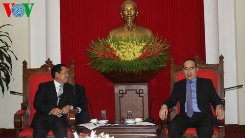 (VOVworld)- 越南人民军副总参谋长潘文江中将11月25日在河内会见到访的由中国人民解放军总参谋部作战部副部长阚立奎少将率领的中国边防部队代表团。 会见时,阚立奎少将通报了中国人民解放军总参谋部边防代表团与越南边防部队司令部会谈的成果。