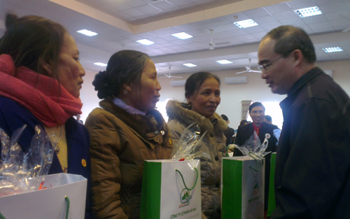 越南祖国阵线中央委员会主席阮善仁向富寿省橙剂受害者赠送慰问品