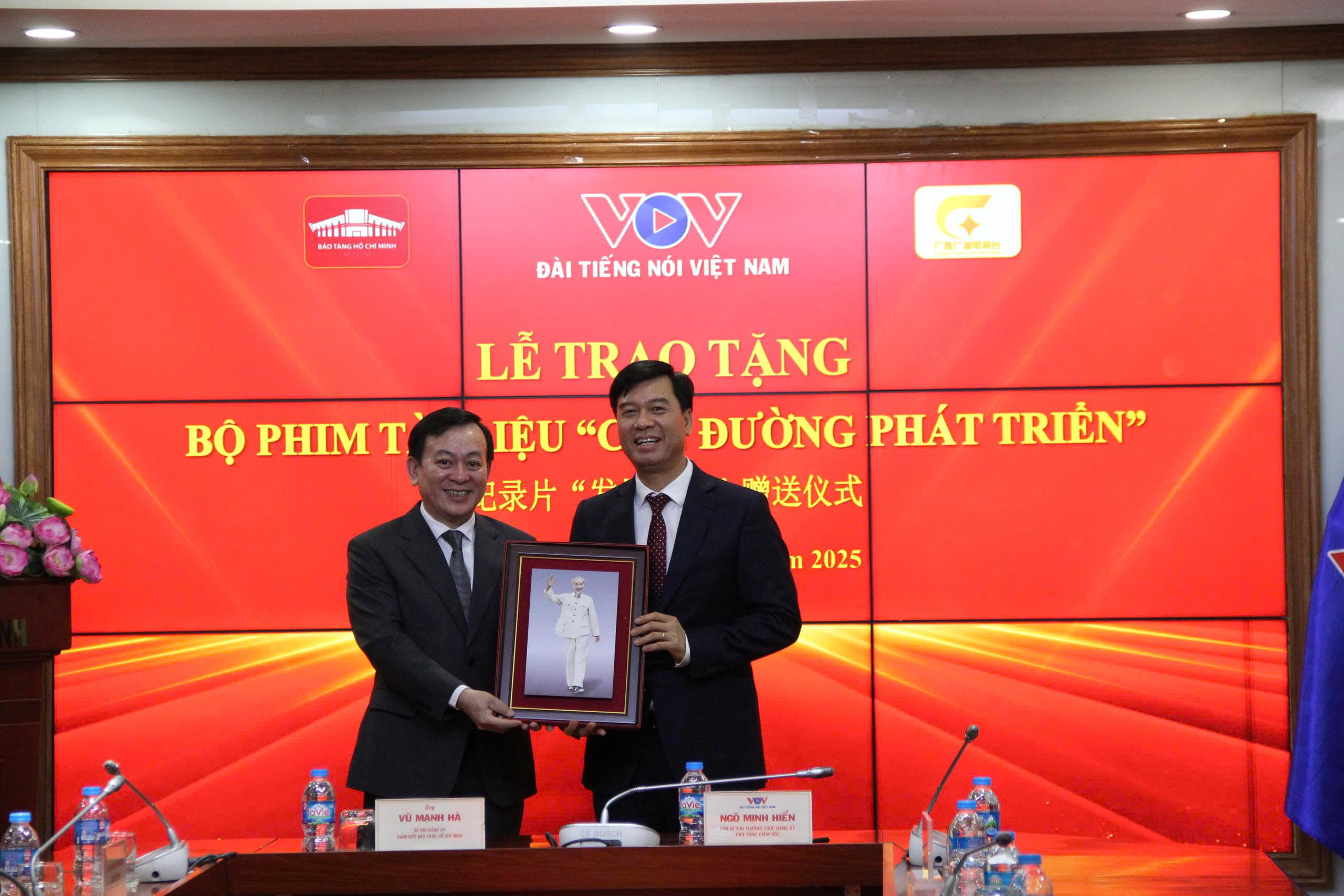 本台副台长吴明显在赠送仪式上发表讲话表示:“这是一部非常有意义的纪录片,概括介绍了几十年来越中两国关系和多方面的合作。我们希望,向胡志明博物馆赠送这部纪录片,能够继续传递美好的寓意,再次与媒体机构一道,推动越中两国的合作关系。”