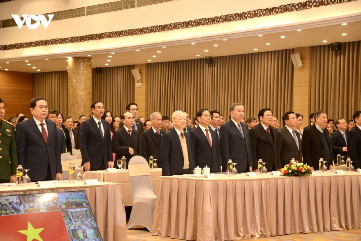 阮富仲强调,革新近40年来,越南逐步打造了富有“越南竹子”特色的特殊对外与外交流派。阮富仲高度评价全国外交部门所取得的突出成果。他说:“越共十三大以来,党和国家领导人出访和与外国领导人通话,特别是主要领导人对周边国家、大国、战略伙伴国家、大部分东盟国家、传统伙伴和朋友国家共40余次访问;以及,世界多国元首、高层领导人和主要国际组织领导人对越南的访问均取得圆满成功,在过去3年里描绘出一幅非常美丽、热络且极具吸引力的外交画卷,开创了越南新的、广受国内舆论和国际友人高度赞赏、认同和支持的国际地位。”