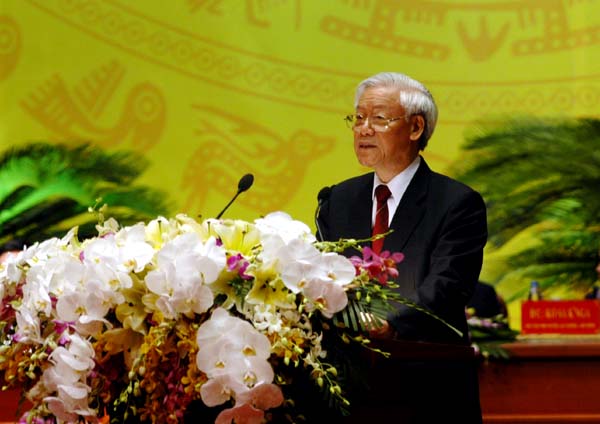 越共中央总书记阮富仲在大会上发表讲话。图片来源:越南共产党电子报