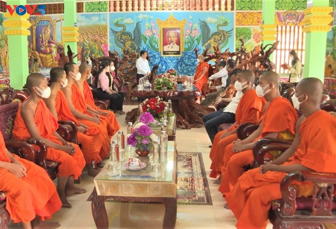 借此机会,越南祖国阵线中央委员会也向芹苴市爱国僧侣团结协会以及波诗松隆寺、当地和尚、尚座、大德、僧侣及一些优秀高棉族家庭赠送礼物。
