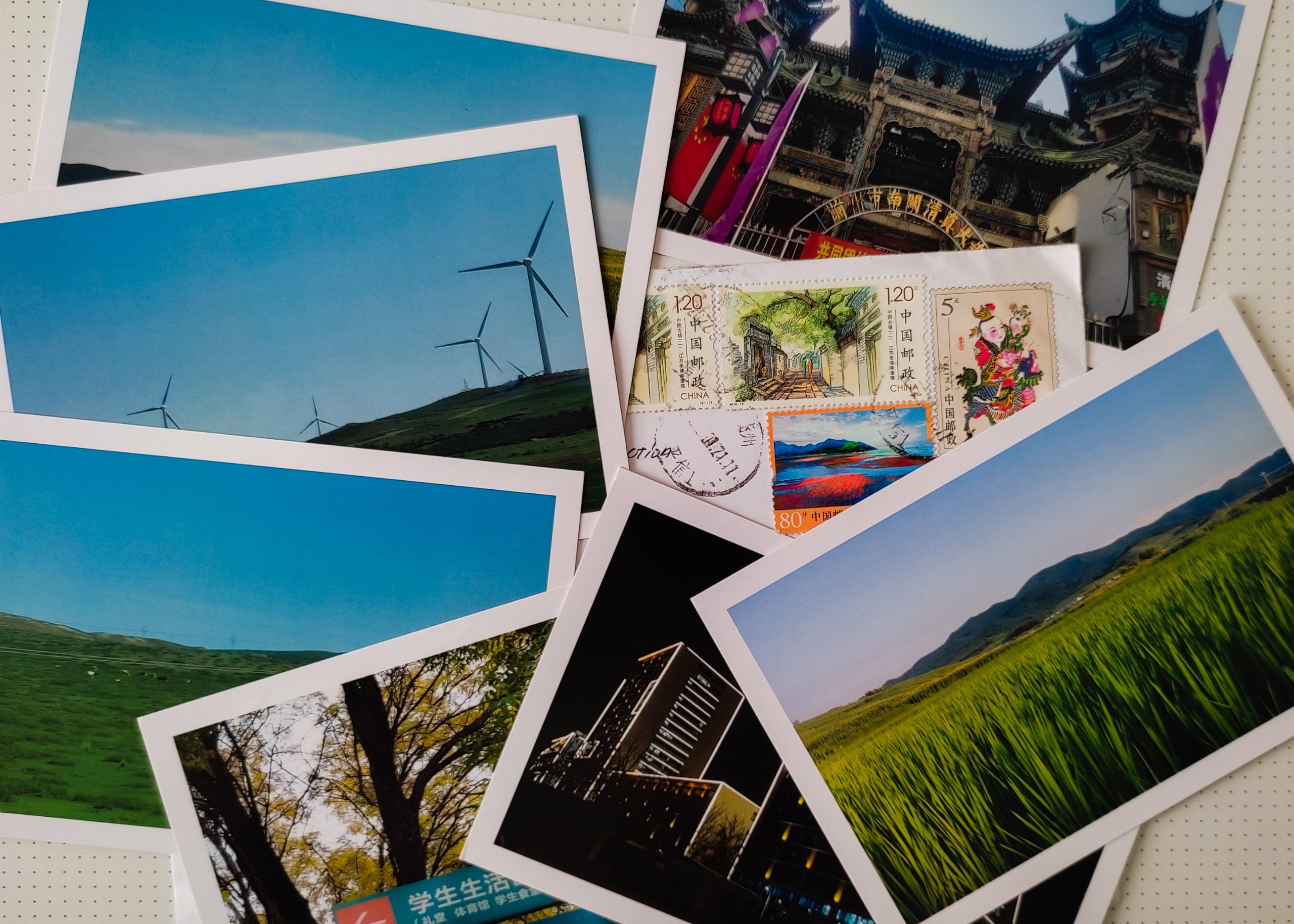 浙江省衢州市听众康祯恒也给我们寄来7张明信片,其中有的是兰州校园里拍的风景,有的是内蒙古草原上的风力发电机及牛羊,也有的是家乡吉林。据他介绍说,这些都是他拍的照片,每过一年就会在他当年拍的照片中,挑出一些比较好的或是有代表性的,拿去定制明信片寄给朋友。