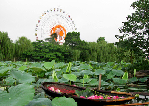 莲花季开始于人们纪念胡志明主席诞辰之际。每年的五月,娇艳的莲花装点着西湖。湛蓝的天、洁白的云、翠绿的莲叶、粉红的莲花,满目皆是鲜活的色彩。早晨,一群老人来这儿晨练,花农则乘船到湖心采莲。采莲是一件与时间赛跑的活儿,因为只有在早晨,花香才最浓、最纯。