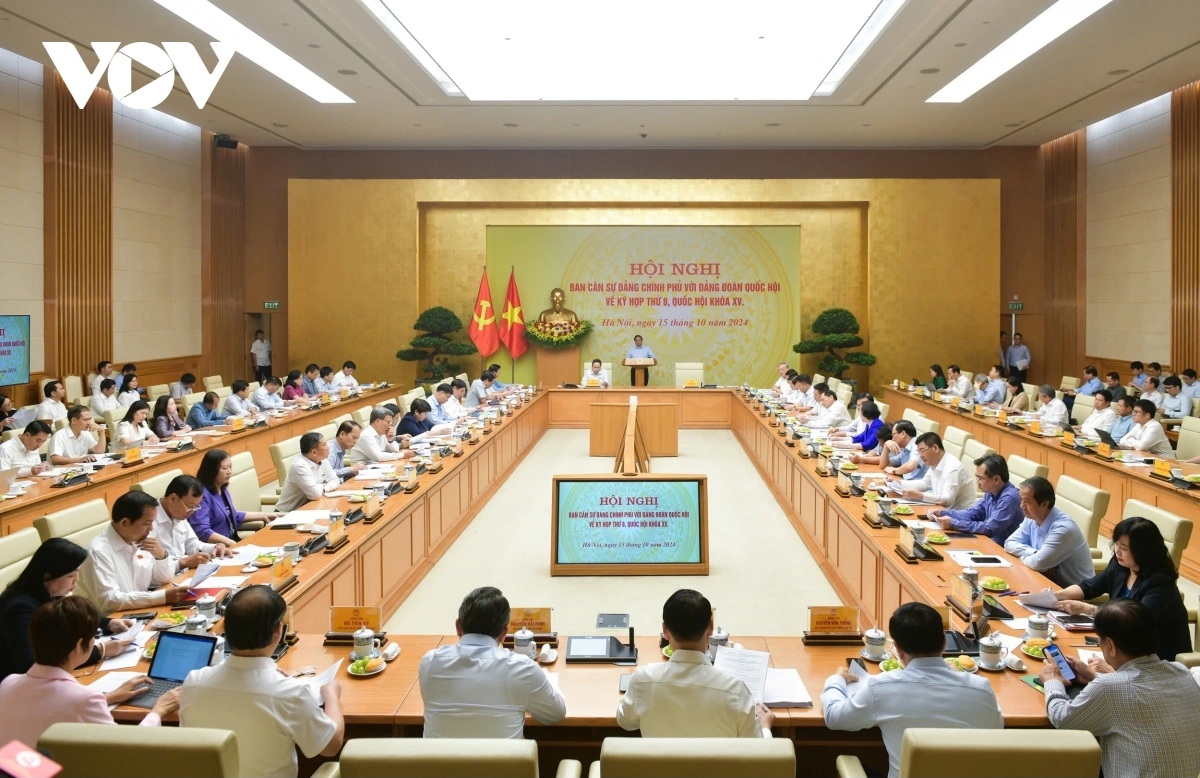 政府党组与国会党组会议15日在河内举行,旨在讨论第十五届国会第八次会议相关内容。政府总理范明政和国会主席陈青敏共同主持会议。