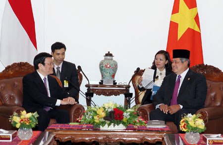 张晋创在会见中强调,越印尼两国都是东南亚地区人口最多的两个国家,同时也是两个大市场,两国经济有许多共同点,互补性较强,这有助于推动双边关系发展,在两国与地区其他国家的合作中形成一个地区合作和一体化轴心。