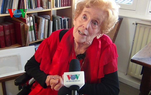 她说:“大会开幕前,我看见胡志明主席走过来。他叫我坐在他旁边,我十分惊讶,我压根没想到像我这样籍籍无名的法国人竟然能坐在我仰慕已久,全世界人民也十分崇敬的胡主席身边,但他确实非常亲切、平易近人。我说我的家乡在图尔市(Tours)后,他说,他知道这座城市,他曾出席在那儿举行的法国共产党大会。他送给我一副象牙手镯。第二天,他请我们到他家玩,一起叙谈。那是我这辈子永远不会忘记的日子。”
