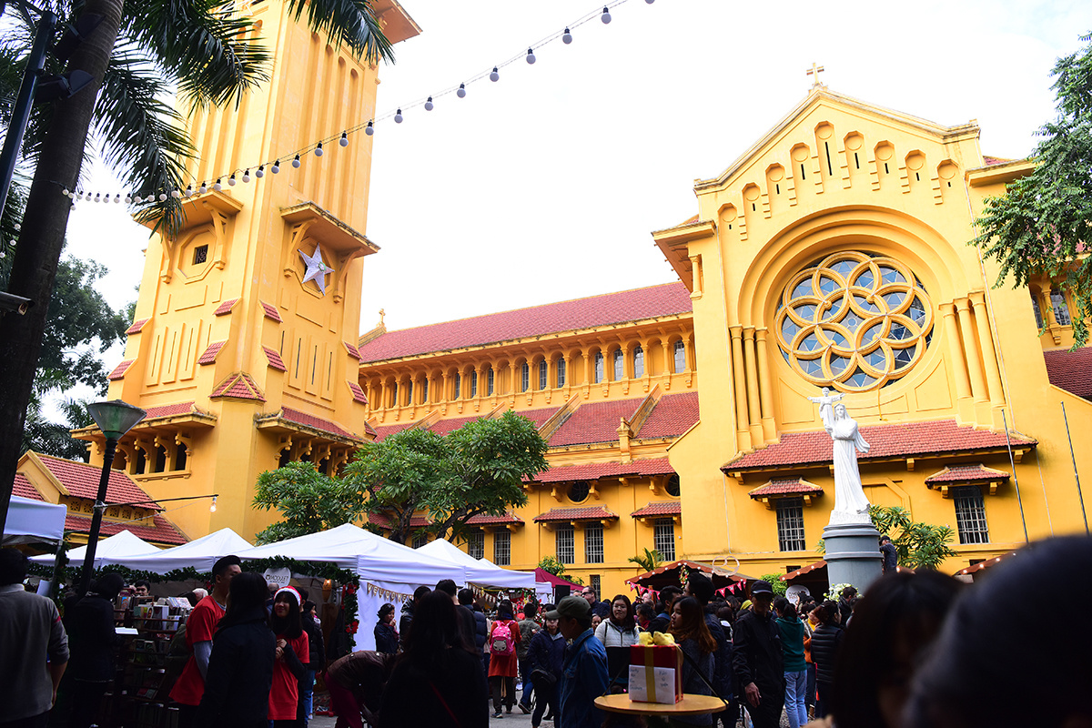 阮霞说: “这么多年了大教堂仍保持原样,只有长满苔藓的旧墙被重新粉刷,地板也是新铺的。不久前,大教堂的圣所做了修葺,祭台也重新修了,十分气派、宽敞。大教堂是河内最大的主教座堂。圣诞节期间,教堂装饰得很美。今年,圣诞树亮闪闪的。来这里游览的国际游客也停步拍照。”