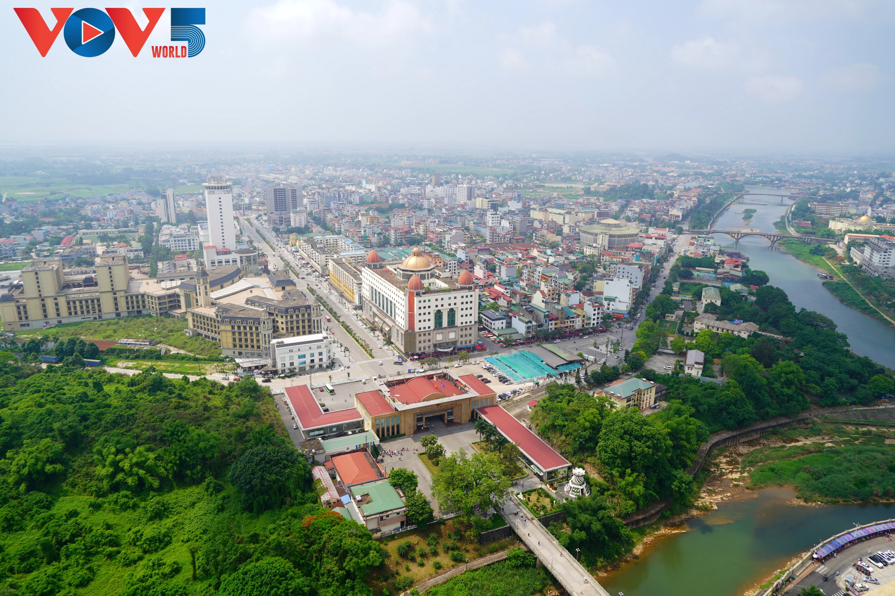 俯瞰越南芒街市一角。