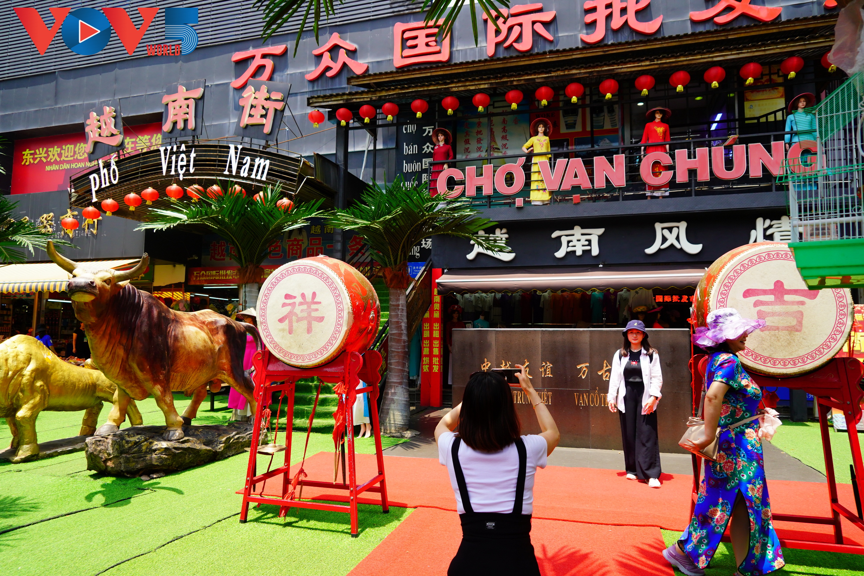 中国人在“越南市场”前拍照留念。