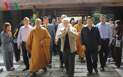 阮富仲总书记去年全民族大团结日探访北宁省佛迹寺 |