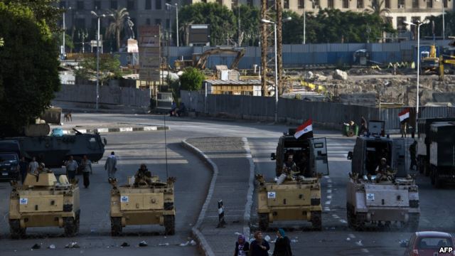 (VOVworld)- 面对被推翻总统穆尔西支持者计划在开罗举行大规模抗议示威,埃及军方在开罗南部最高宪法法院门前部署了装甲车和士兵。穆斯林兄弟会高举反政变联盟旗帜计划举行全国性抗议示威。