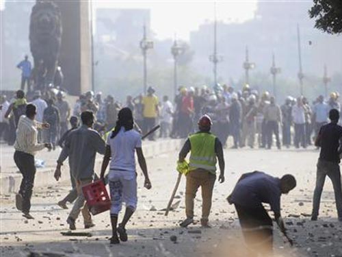 (VOVworld)-国际发展中心八月二日发布的“民主指数”报告显示,今年七月份,埃及共发生一千四百三十二场游行示威,创包括这一北非国家在内的人类史上最高记录。 埃及平均每天发生四十六场示威游行。共有三千万人参加了示威活动,旨在反对前总统穆尔西并支持埃及军队在七月三日政变后拟定的权力移交路线图。而一百多万穆斯林也走上街头支持穆尔西总统并反对军队政变。 当天,埃及内政部领导人与警方高官开会,商讨如何疏散示威者。