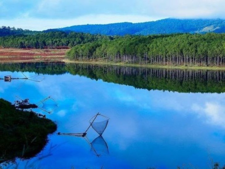 从大叻市中心出发,沿着20号公路走7公里就来到泉林湖。泉林湖面积约320公顷,水面碧绿清澈,湖边是绿油油的松树林,湖上散落着几座小岛。图片来源:vietnamtourism.gov.vn。