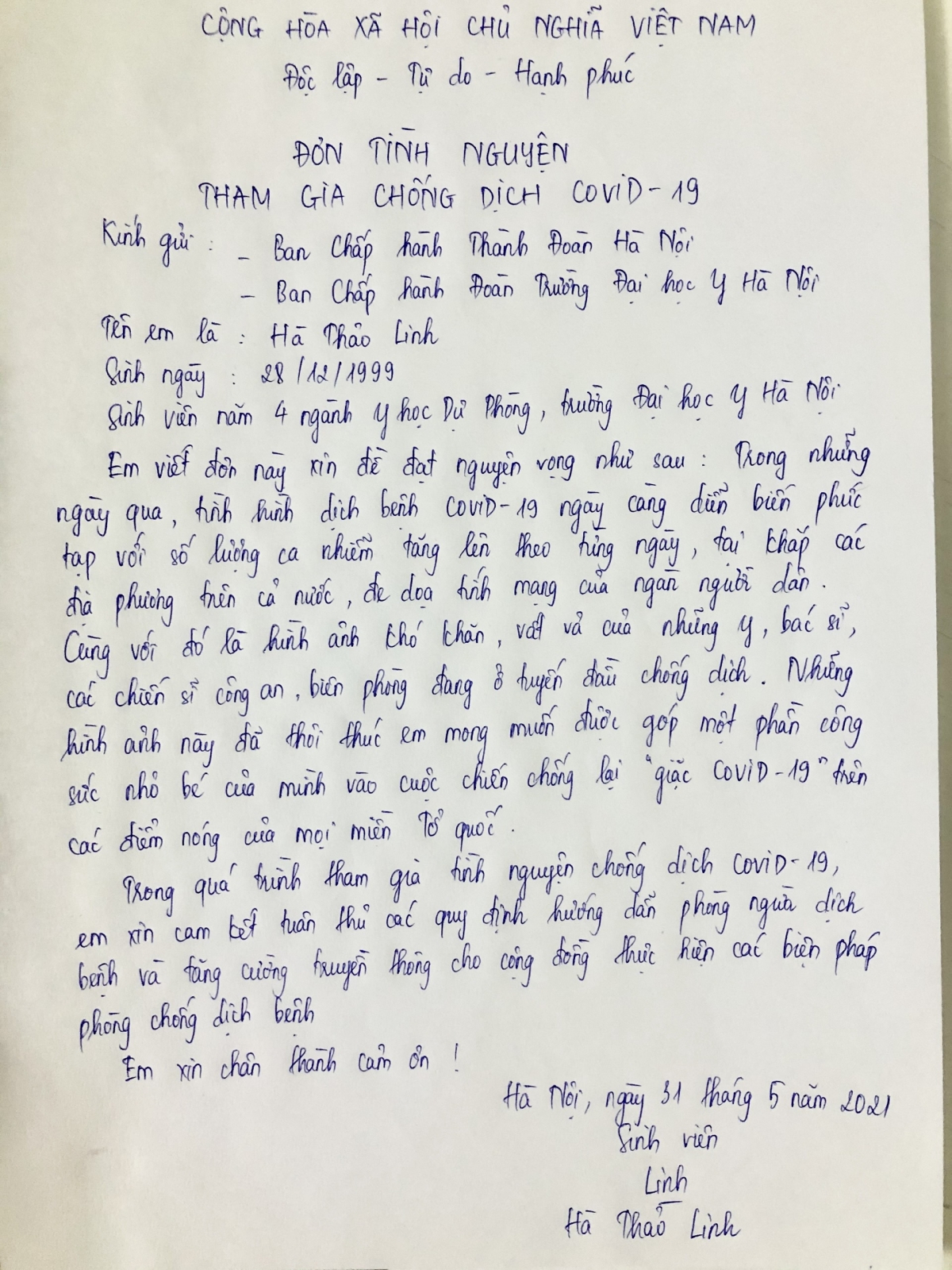 河内医科大学学生加入防疫一线志愿者的申请书 |