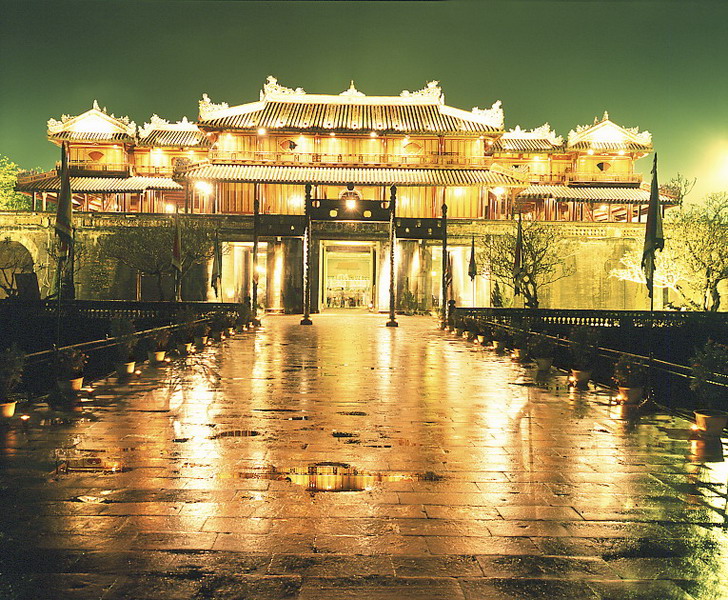 谈到顺化古都就要谈到顺化京城、皇城、紫禁城等建筑的美。三层城墙采用南北纵轴对称的平面布局。这里的城郭系统是融合了东西方文化的建筑,坐落在御屏山、香江、野园丘、仆清丘等优美的自然景观中。皇城被每边长近六百米的方形城墙所环绕,设有四个出入门,其中最独特也常被视为顺化古都象征的是午门,这里是阮朝历代朝廷的最高行政中枢。皇城内是皇家生活的紫禁城。