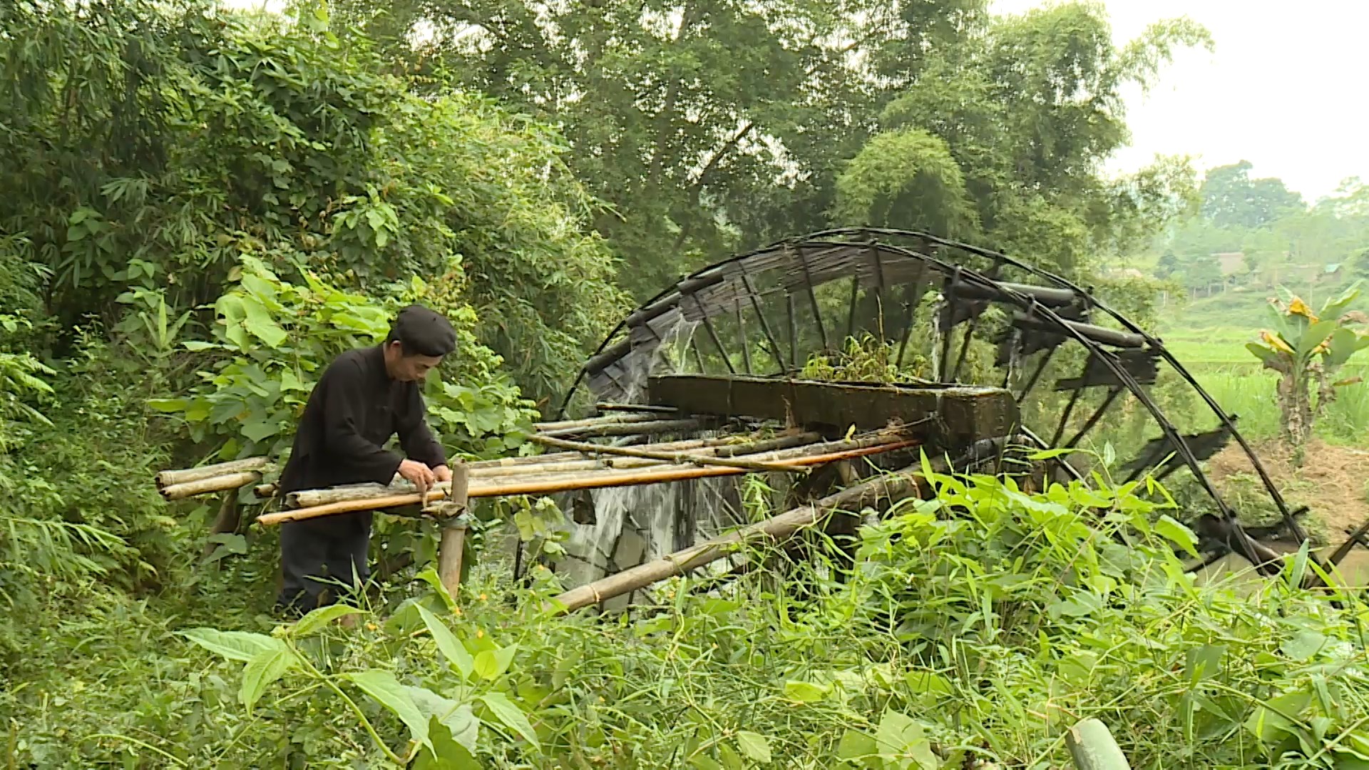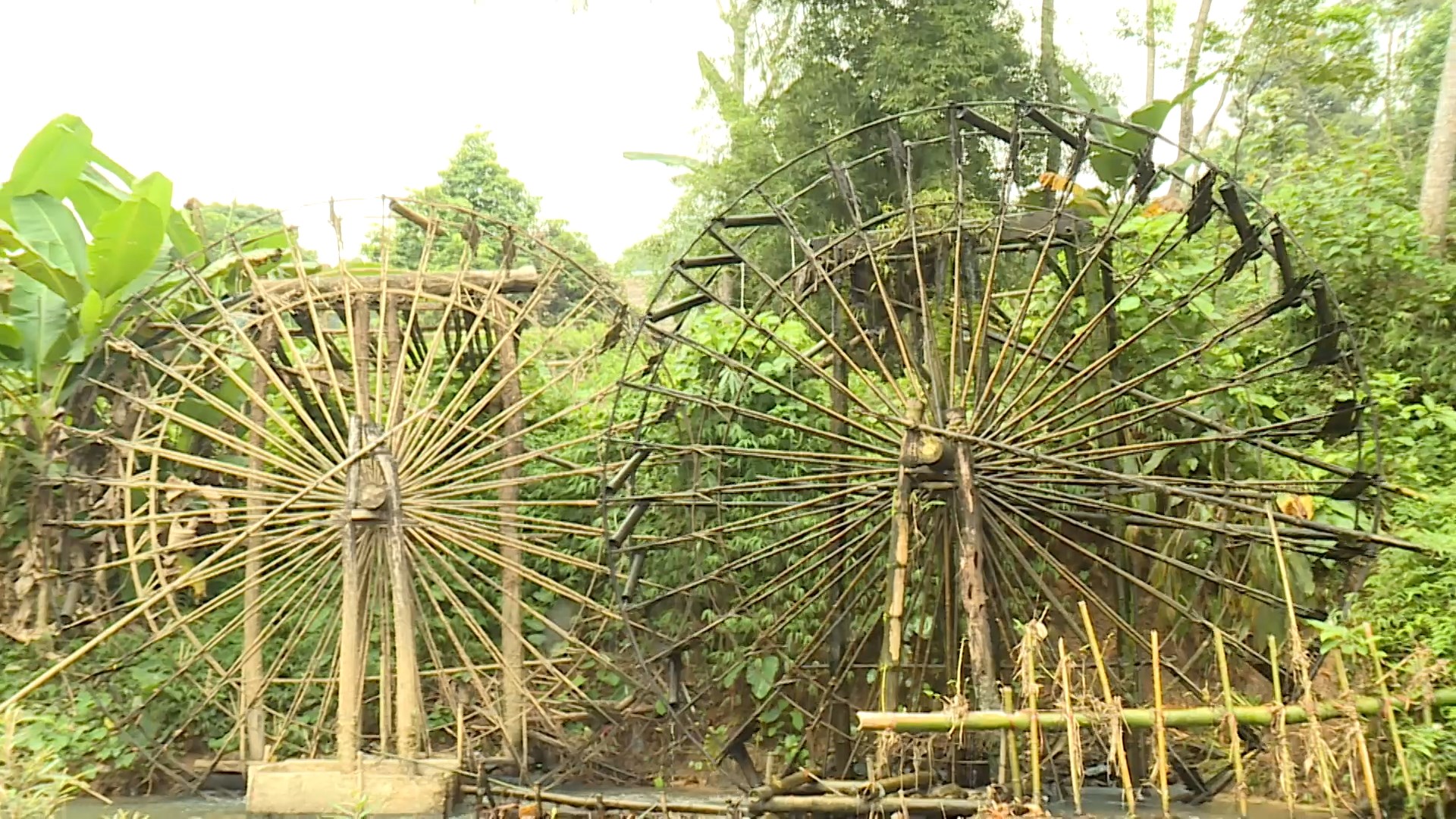 用竹子制作的水轮就像一个艺术品 |