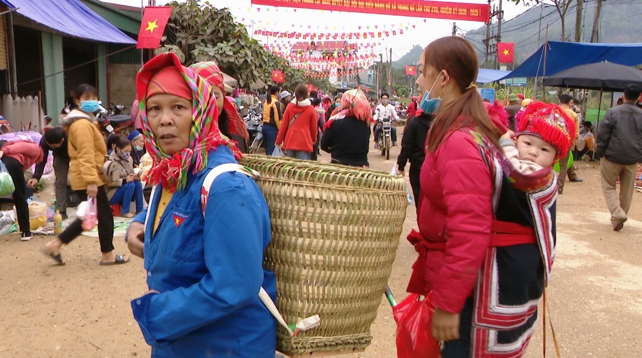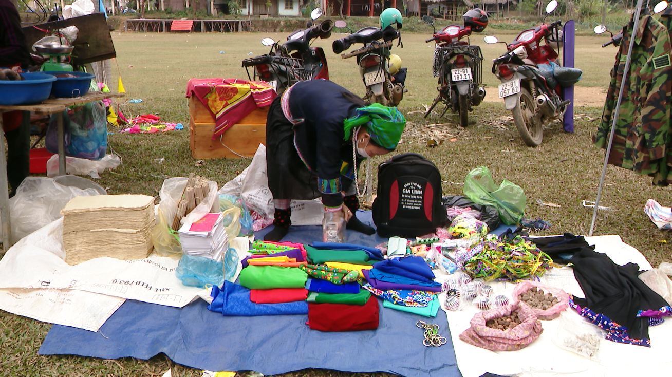 腊月底这几天,我们一起参观了宣光省沾化县中河乡纳洛村的集市。集市仅在每周五开市,气氛极为热闹,货品多种多样,有农产品、食品、土锦布、日用品、家养宠物等。因为临近春节,所以集市比平时更加热闹。与赶集购物的山区居民聊天,我们能感受到他们的喜悦。当地居民说:“到这里,我买了粽叶、竹条用来包粽子,准备迎接春节。我经常周五赶集,我喜欢赶集因为人多,听大家说说笑笑,感到很高兴”。