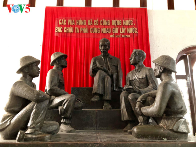 1946年2月18日,宣读《独立宣言》5个多月后,胡志明主席签署22号CNV/CC主席令,将每年农历3月初10定为全国法定假日,以缅怀祖先。图中是再现胡志明主席于1954年9月18日与准备接管首都的先锋大军团指战员谈话情景的塑像。 |