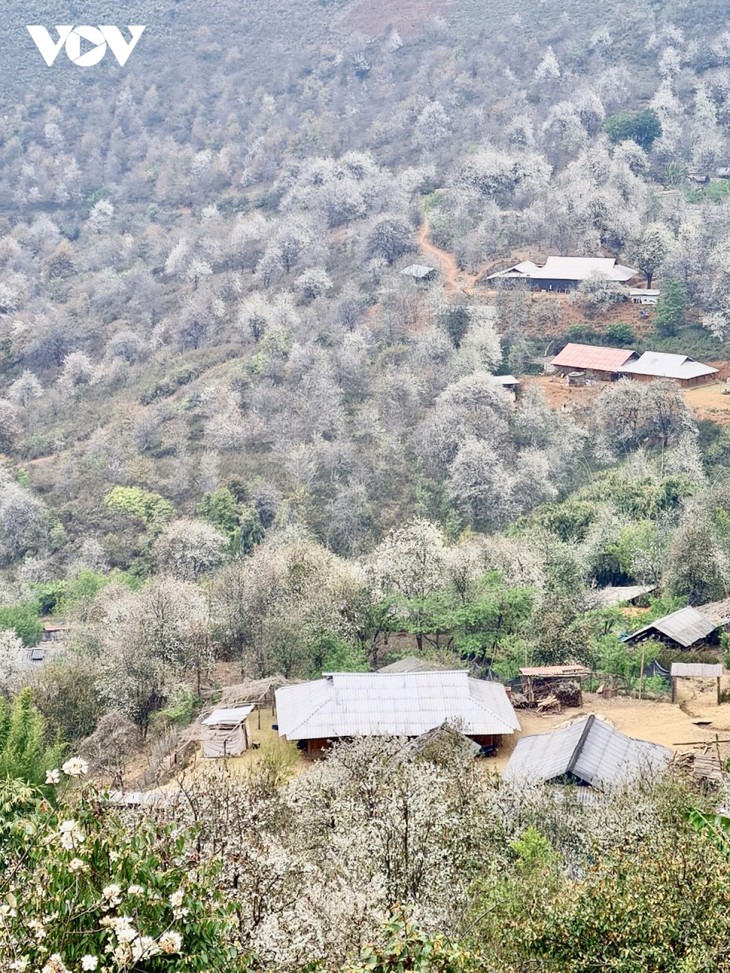 赫蒙族同胞的房屋周围开满山楂花,形成一幅美丽的大自然画卷。 |