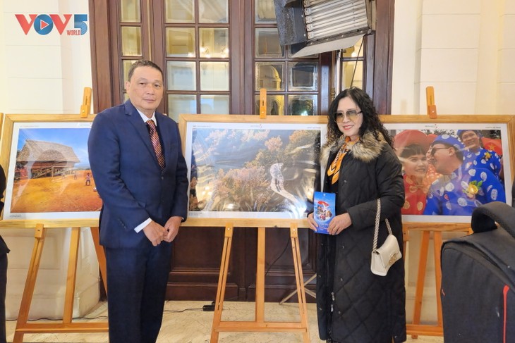 | 颁奖典礼框架内,组委会也在河内大剧院举行《幸福越南》图片展开幕式。图为图片展开幕剪彩仪式。 |