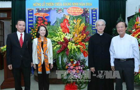 (VOVworld)- 适值2016年圣诞节之际,越共中央政治局委员、政府副总理张和平探望胡志明市教区主教座堂并向当地天主教、福音教教徒致以节日祝贺。张和平对天主教、福音教信教同胞为国家取得的共同成就所作的贡献表示感谢。