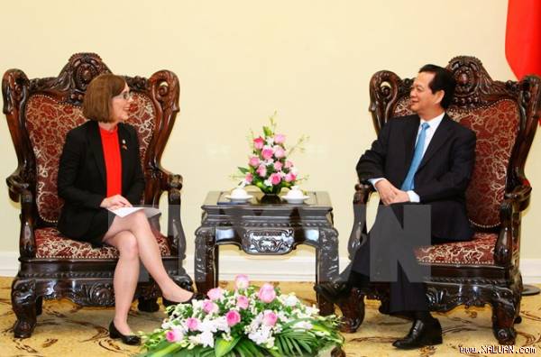张晋创高度评价美国企业所做的贡献,以及就与越南开展投资合作作出的承诺,并强调,越方将努力做好国内各方面准备,完善市场经济体制和法律政策框架,改革行政手续,尤其是将包括《跨太平洋伙伴关系协定》在内的各项自贸协定承诺进行国内法律化,旨在为美资企业扩大工业、服务业、高技术、农业加工和生物制药等领域的对越投资创造便利条件。
