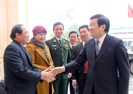 (VOVworld)- 作为越南外交部海外越南人国家委员会举行的2016年“家乡之春”活动的内容之一,越南国家主席张晋创及夫人1月31日下午同越侨代表在升龙皇城遗迹区敬天殿上香。