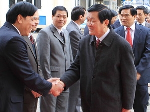 (VOVworld)- 正在考察北部各省边界线安全保障工作的越南国家主席张晋创一行1月11日看望慰问高平省贫困家庭和荣军烈士家属。值此之际,他向该省贫困户和政策优抚家庭赠送300份礼物和两百床棉被。