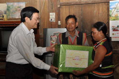 (VOVworld)- 正在西原地区各省进行调研的越南国家主席张晋创3月16日视察嘉莱省德基县易亚楠乡社会经济发展和国防安全保障情况。易亚楠乡地处越柬边界线,因此张晋创要求嘉莱省有关部门和经济单位与该乡政府配合,做好扶贫减贫工作,帮助当地居民稳定生活,发展生产。他还看望了驻扎在易亚楠乡的723边防站。当天下午,张晋创也与第3军区司令部举行了工作座谈。他强调,包括第3军区在内的人民武装力量要深刻贯彻党和国家关于保卫和建设祖国的决议,做好民运工作。 同一天,张晋创看望西原特警团和肩负着巩固具有战略意义的西原地区经济社会,巩固当地国防安全重任的15兵团。