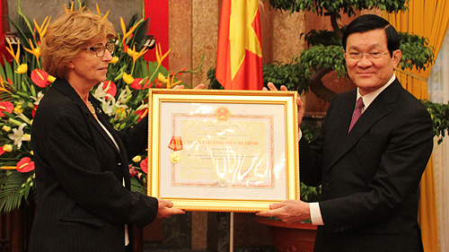 (VOVworld)- 越南国家主席张晋创9月25日在主席府向第二次世界大战中法国的著名革命战士、越南人民的亲密朋友雷蒙.奥布拉克追授胡志明勋章。他的女儿伊丽莎白.奥布拉克代表奥布拉克一家接受越南党和国家的这项崇高荣誉。