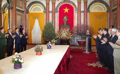 (VOVworld)- 越南国家主席张晋创2月7日上午在河内看望越南国家石油天然气集团全体工作人员并向他们拜早年。