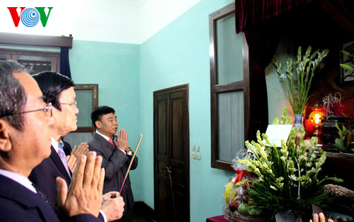 (VOVworld)- 越南国家主席张晋创2月17日探望隆安省人民、老干部、没有条件回家过年的工人并祝贺新春。