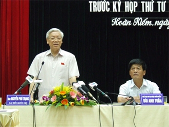 阮富仲接触河内市巴亭郡选民
