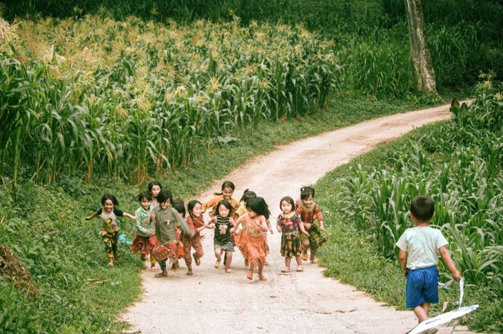 孩子们在村头玉米田边玩耍。图片来源:《越南新闻网》。
