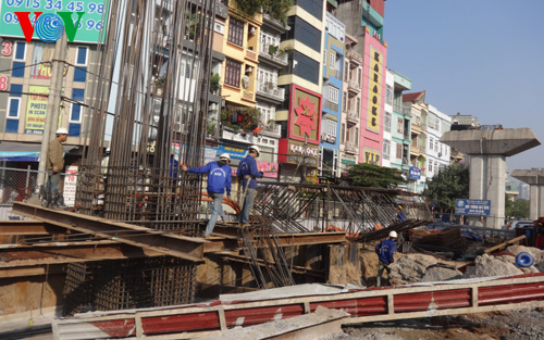 在河内-海防高速公路项目嘉林立交桥施工现场,工人们正认真工作,以确保年底通车和这条全长100多公里的公路全线投入运行。