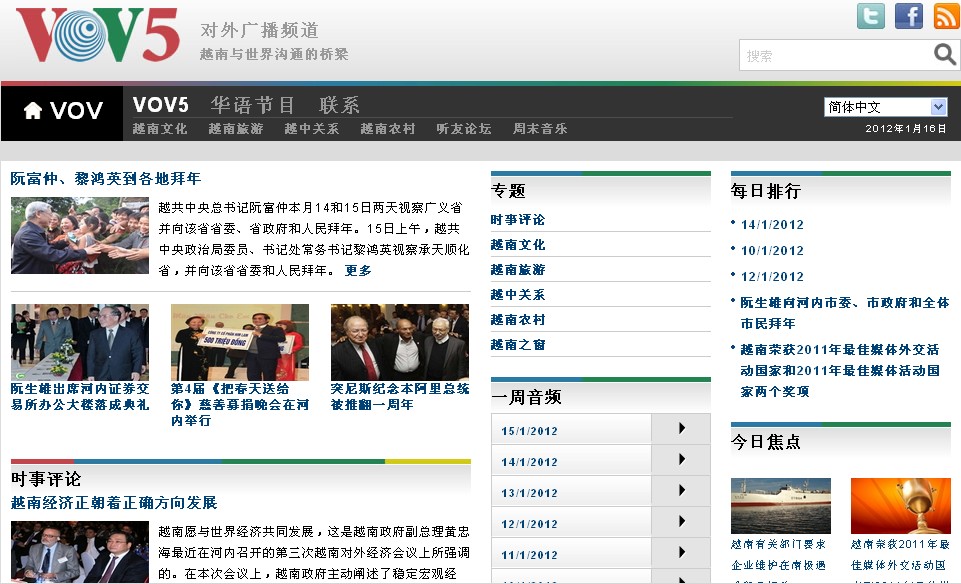 本台对外广播频道网站16日举行正式开通仪式。网址为VOVWORLD.VN或VOV5.VN。