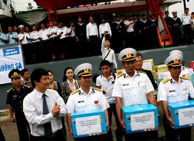 为改善长沙群岛仙女岛军民生活条件,越南海军第四区司令部送年货上岛,以使岛上军民能过一个快乐的春节。