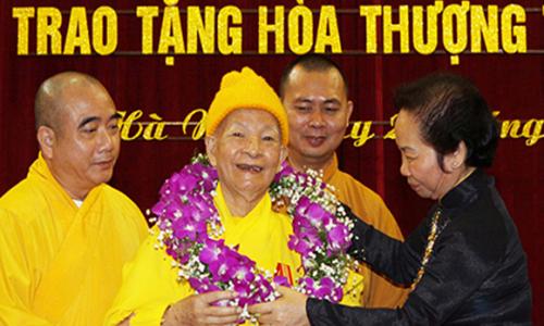 越南政府副总理阮善仁28日在胡志明市向越南佛教教会治事委员会主席释智静大德授予胡志明勋章