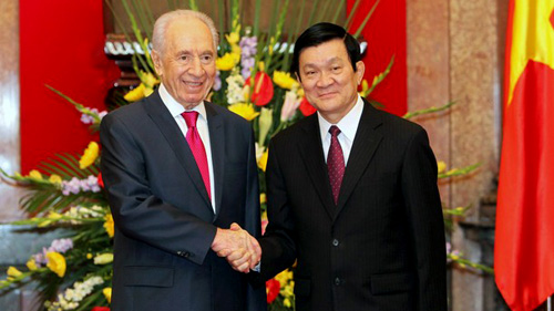 越南国家主席张晋创23日在主席府与以色列总统希蒙.佩雷斯举行会谈。