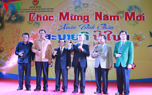(VOVworld)-越南驻老挝大使馆1月29日在老挝首都万象举行招待会,喜迎2016年丙申春节并庆祝越共十二大成功召开。