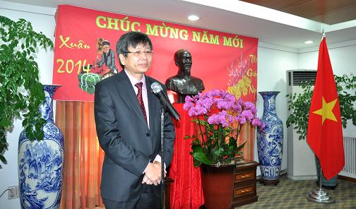 (VOVworld)-越南驻香港和澳门总领事馆1月24日为当地越南人举办甲午春节见面会。 越南驻香港和澳门总领事阮氏雅在会上发表讲话,希望旅居港澳越南人继续团结,发挥相亲相爱精神,为祖国家乡作出更多的贡献。 24日晚,越南驻新加坡大使馆也为当地600名越南人举办迎春见面会。 值此之际,旅居新加坡越南人联谊会成立。联谊会主席武明姜表示,该会将致力于促进旅新越南人团结,并举办各项切实活动,互相帮助,推广越南文化,为加强两国友好关系做出贡献。