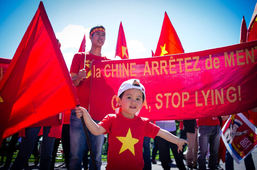 游行者高举越语、英语、法语、华语标语,要求中国立即停止错误行为,从越南专属经济区和大陆架撤走钻井平台,遵守1982年《联合国海洋法公约》,同时强调,越南是个热爱和平,不希望战争的国家。