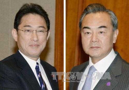 日本外相岸田文雄和中国外长王毅