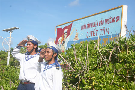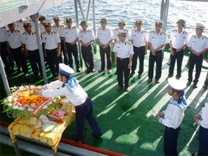 ( VOVworld ) – 正探望长沙群岛,有庆和省、永福省、奠边省和越通社代表参加的工作代表团16日下午举行为捍卫祖国主权和领土完整而英勇牺牲的英雄烈士悼念会。海军第四区司令部副政委阮德旺大校在会上致辞时强调,24年前的1988年三月,64名越南人民海军官兵为捍卫长沙群岛主权而英勇牺牲。阮德旺表示,越南海军一代代指战员决心捍卫祖国神圣领土——长沙群岛,努力将庆和省长沙岛县建设成为富强岛县,以相称于其在东海的战略地位。